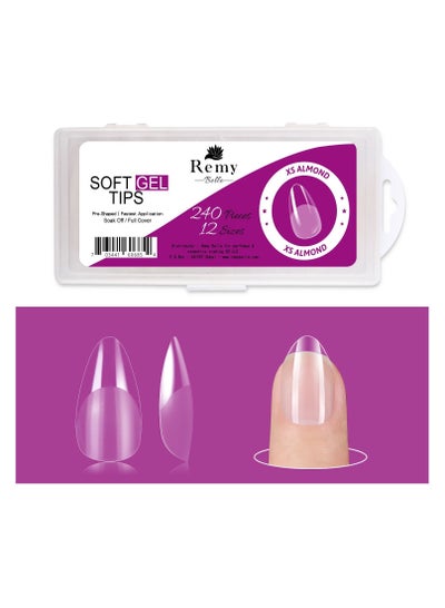 مجموعة أطراف أظافر جل ناعمة XS بلون اللوز، 240 قطعة من 12 مقاسًا