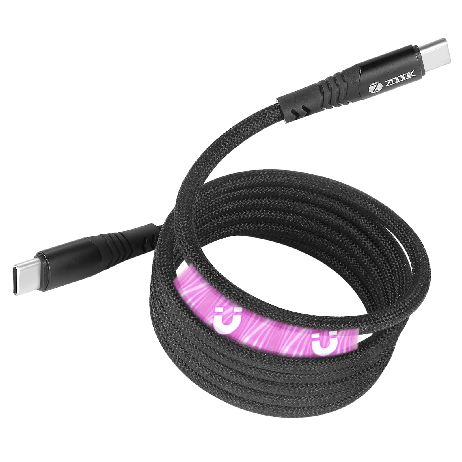Charge and sync your devices effortlessly with the ZOOOK USB-C to USB-C Premium Magnetic Cable. Designed with 65W Power Delivery, it supports fast charging for laptops, tablets, and smartphones. The 120cm length is crafted with durable nylon braiding to resist wear and tangling, while the thick copper core ensures efficient power and data transfer. Featuring reversible connectors and a magnetic self-organizing design, this cable stays neat and tangle-free, making it ideal for home, office, or travel. The springy build adds flexibility and longevity.