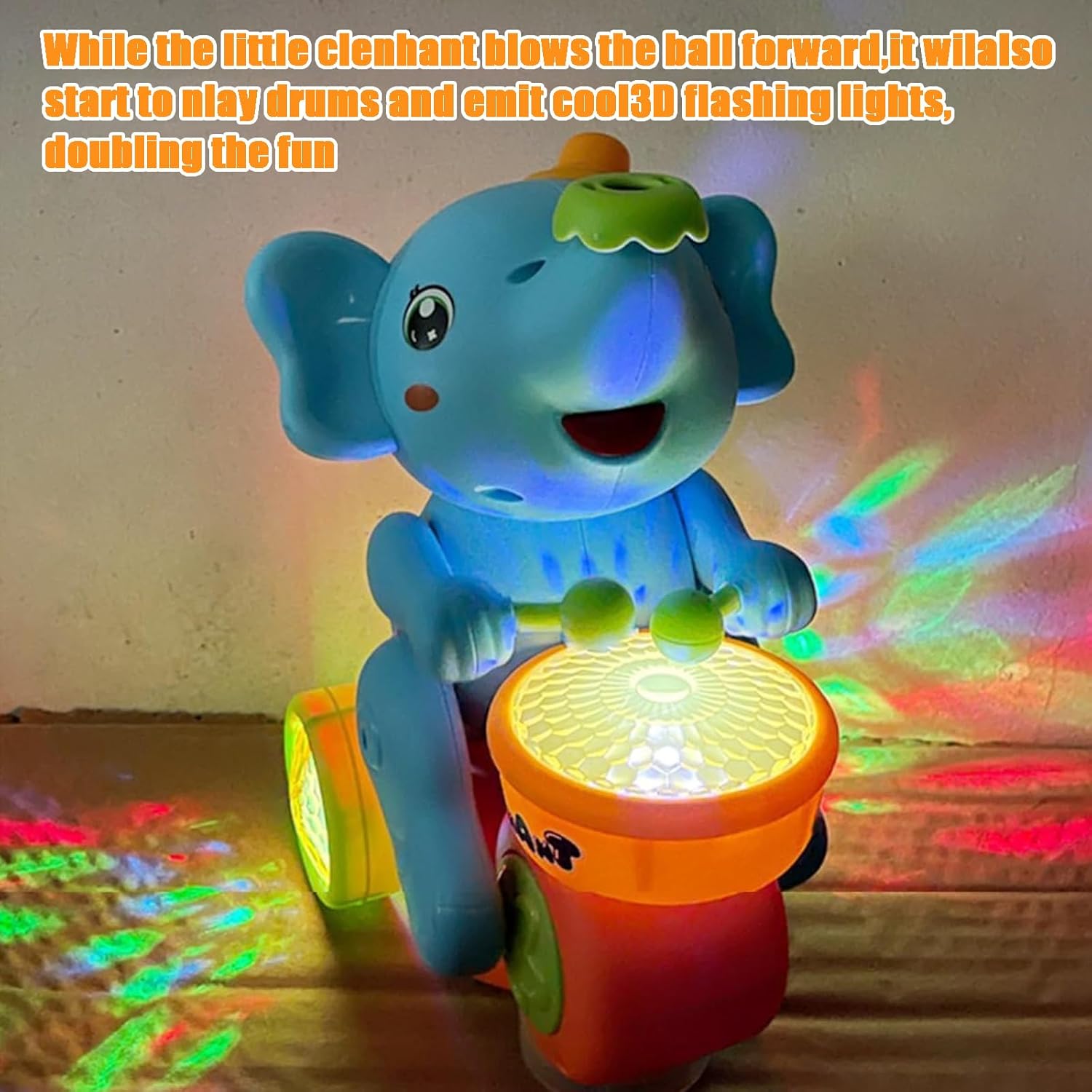 لعبة الفيل ZRW - لعبة كهربائية مزودة بكرة نفخ وطبل وإضاءة LED للأطفال من عمر 6 إلى 12 شهرًا (أزرق)