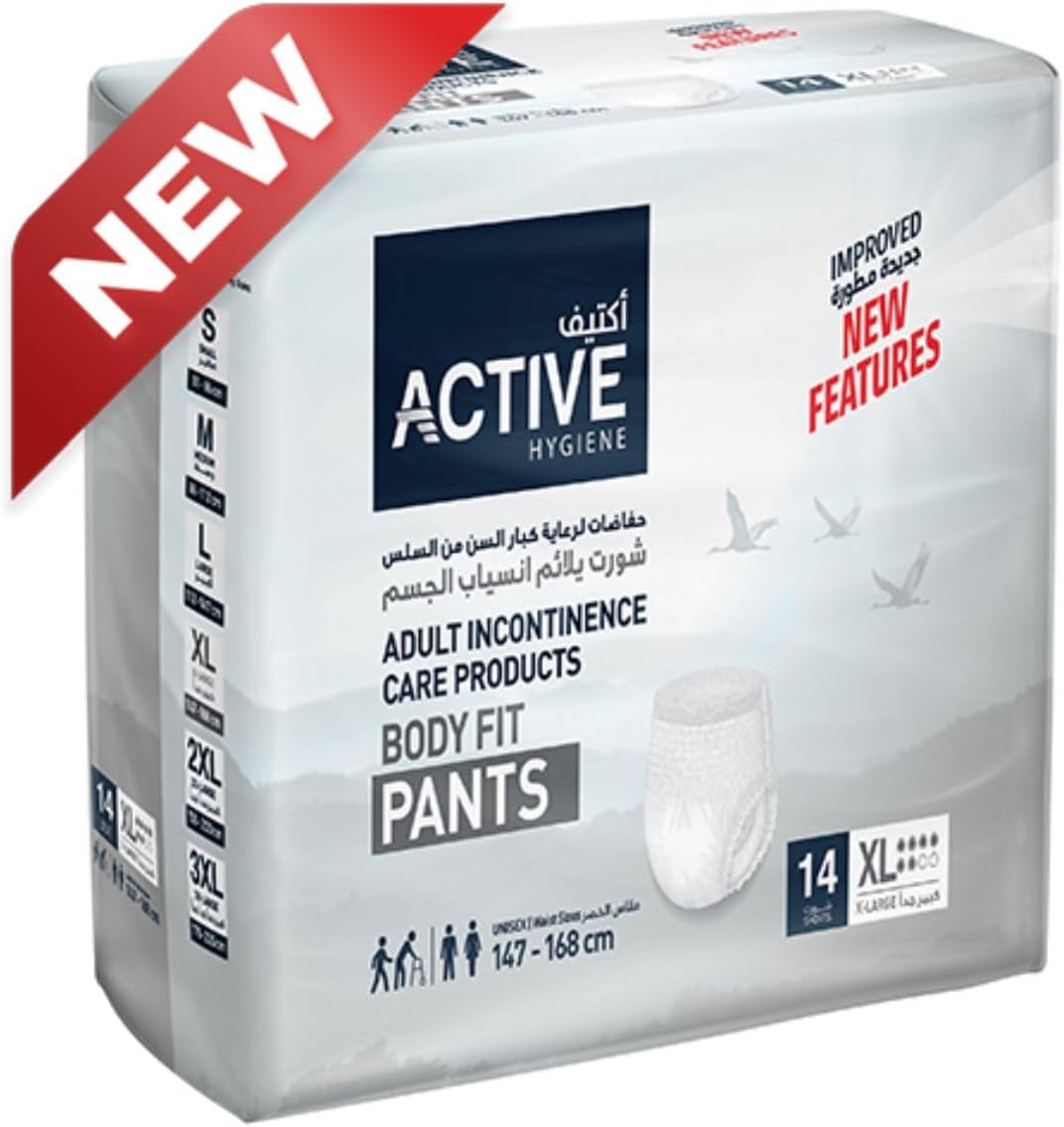 Active Adult Diaper Pants Extra-Large 14 Pieces, Waist Size 147-168 cmDhs. 120.00