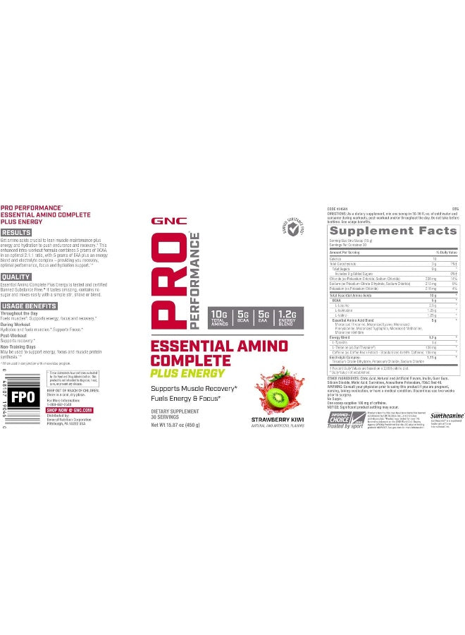 GNC Pro Performance Essential Amino Complete Plus Energy، بنكهة الفراولة والكيوي، 15.9 أونصة، يدعم تعافي العضلاتDhs. 223.00