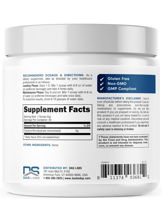 مسحوق كرياتين أحادي الهيدرات من باكد أب، 250 جرام، ميكرونايزد، أساسيات (50 حصة)Dhs. 180.00
