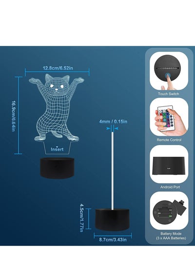 Dance Cat 3D Illusion Cute Night Light Lamp ,16 Colors Changing Kitty Table Lamps with Smart Touch & USB Cable-Home Party Decorations - Cute Birthday Gifts for Kids Teens Girl WomenDhs. 53.04Dhs. 55.00