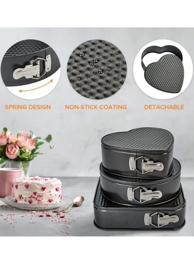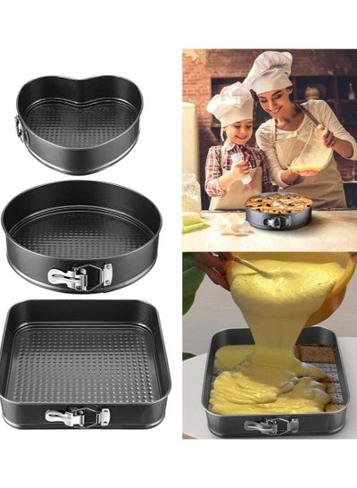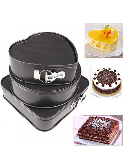 Set of 3 Baking Pan Mold Durable Non-stick Leakproof Cake Bakeware with Quick Release Latch and Removeable Bottom In Round, Heart, Square ShapeDhs. 28.64Dhs. 30.00