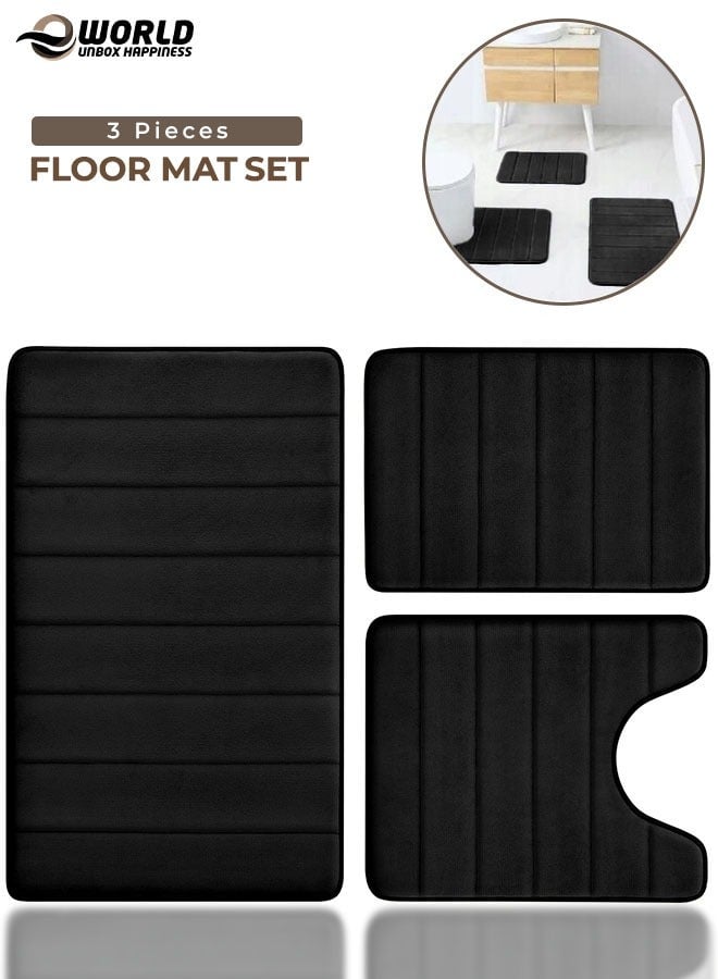3-Piece Bathroom Rug Set, Floor Mat with Memory Foam, Non-Slip, Extra Soft and Absorbent, Machine Washable Pedestal Mat Set for Bathroom, Vanity and Guest Suite, BlackDhs. 44.90Dhs. 59.95