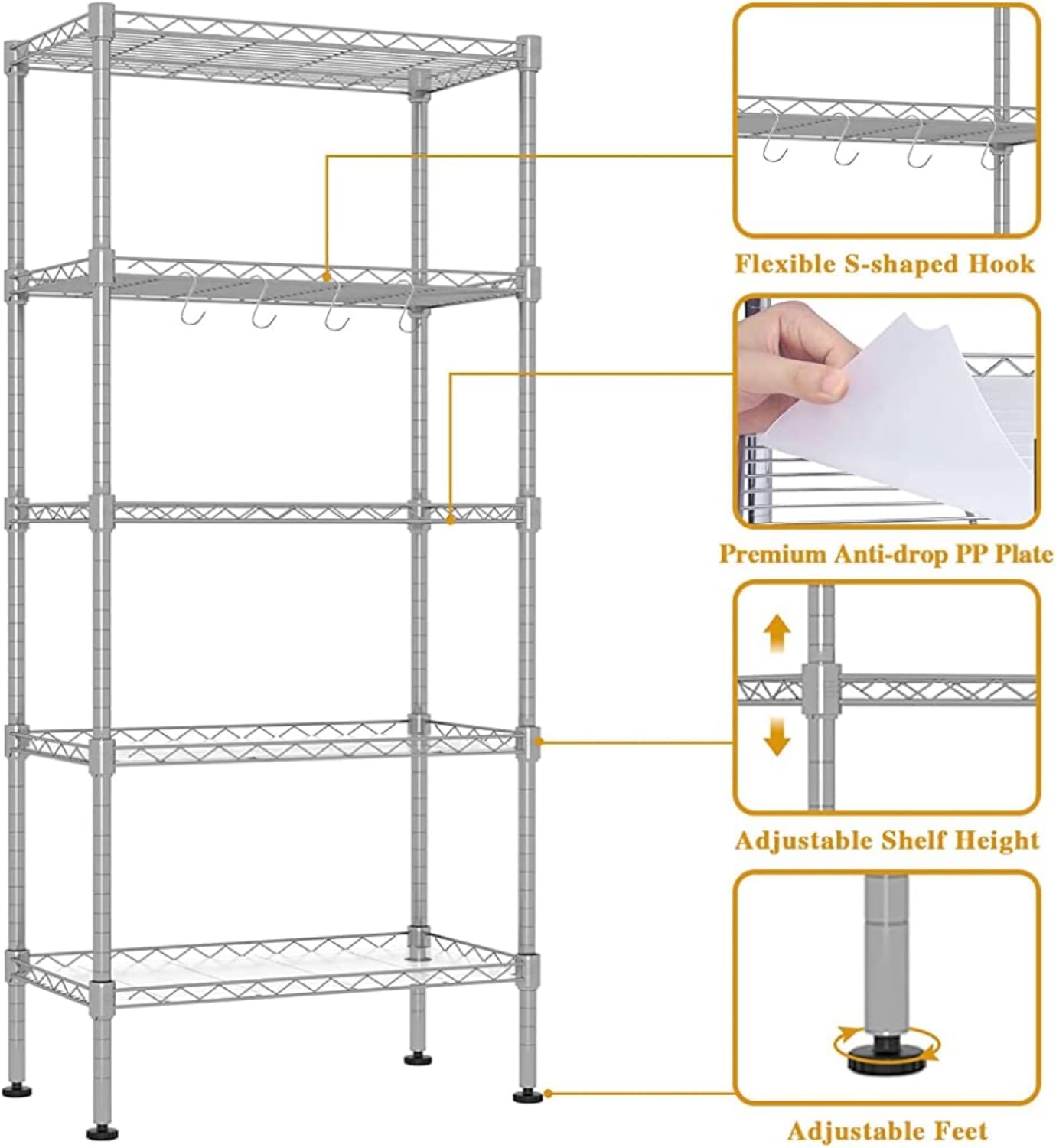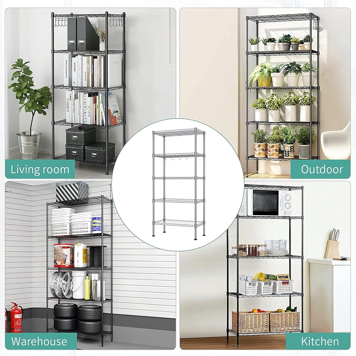 HEXAR 5-Tier Wire Storage Shelving Rack Unit for Home, Bathroom, Kitchen, Office, Garage 5 Shelves Unit Metal Kitchen Storage Rack (BLACK)Dhs. 106.00
