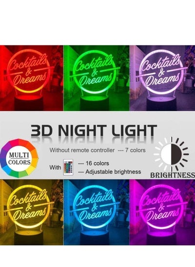 3D Illusion Lamp LED COCKTAIKS DREAMS Multicolor Night Light Cartoon Table Cool Kids Desk Modern Bedroom Bedroom Kids Birthday GiftDhs. 53.04Dhs. 55.00