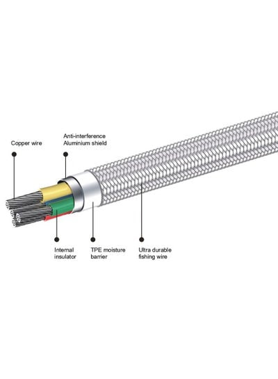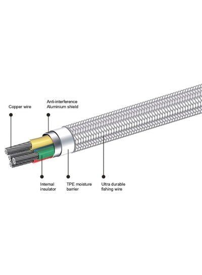 CBL-100 USB-A to Lightning MFI Certified Fast Charge and SYNC Tangle-free Fishing net wire braided Cable, 30,000x Bend-tested 1.2M WHITEDhs. 37.00Dhs. 39.00