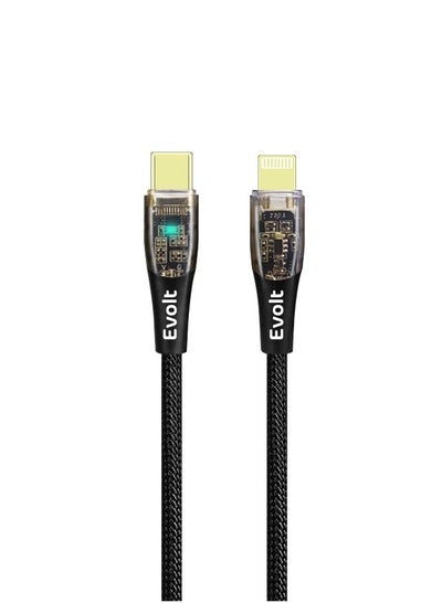 CLB-600 TYPE-C to Lightning Compatible with IPhone PD27W Transparent Fast Charge and SYNC Tangle-free Nylon braided cable with triple protection, Supports quick charging 1.2M BLACKDhs. 34.00Dhs. 39.00