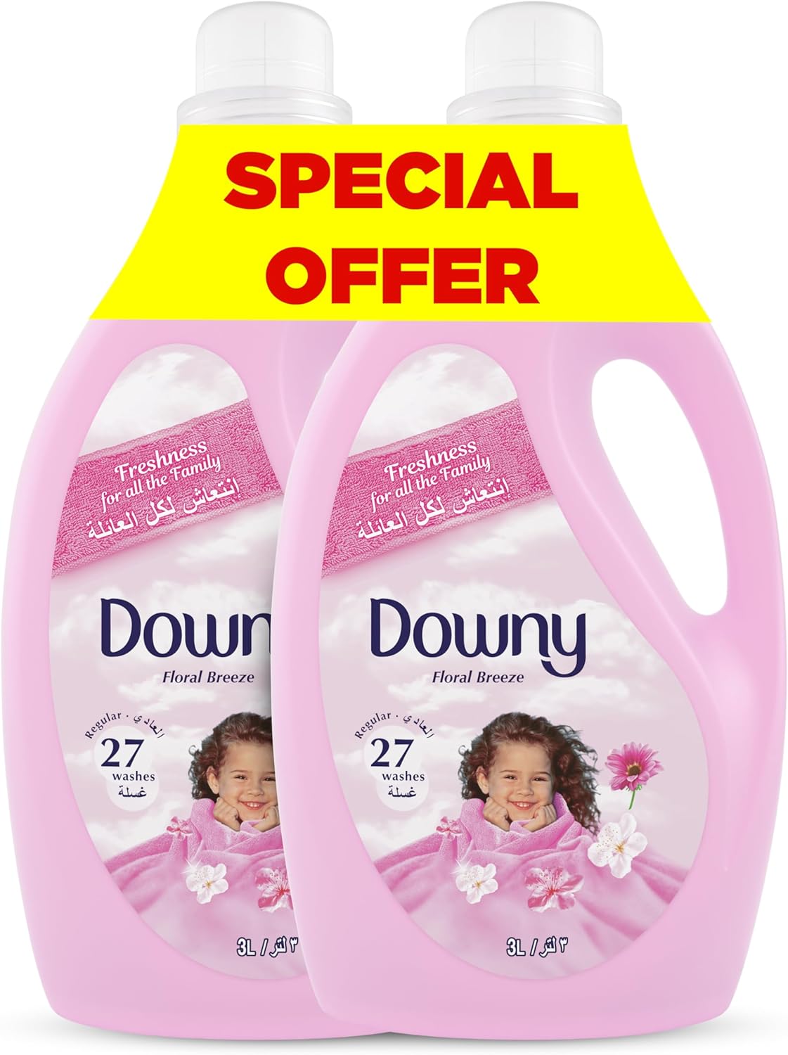 Downy Fabric Softener, Floral Breeze Scent, Fabric and Wrinkle Protector, Long-Lasting Freshness, Pack of 3 LitersDhs. 30.00