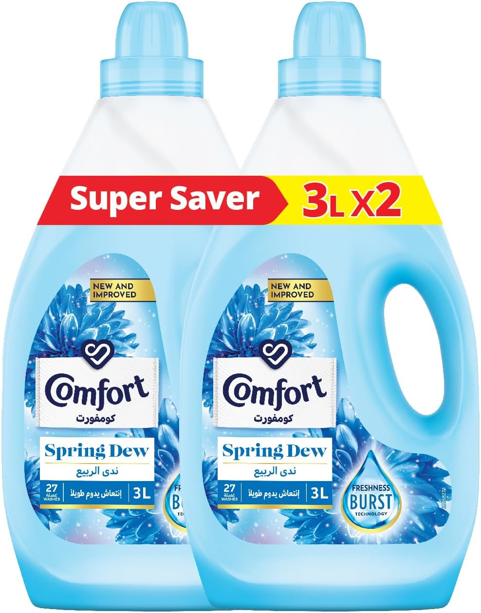 COMFORT Fabric Softener, Spring Dew, with freshness-burst technology for longer lasting fragrance & soft clothes, 3L x 2Dhs. 75.00