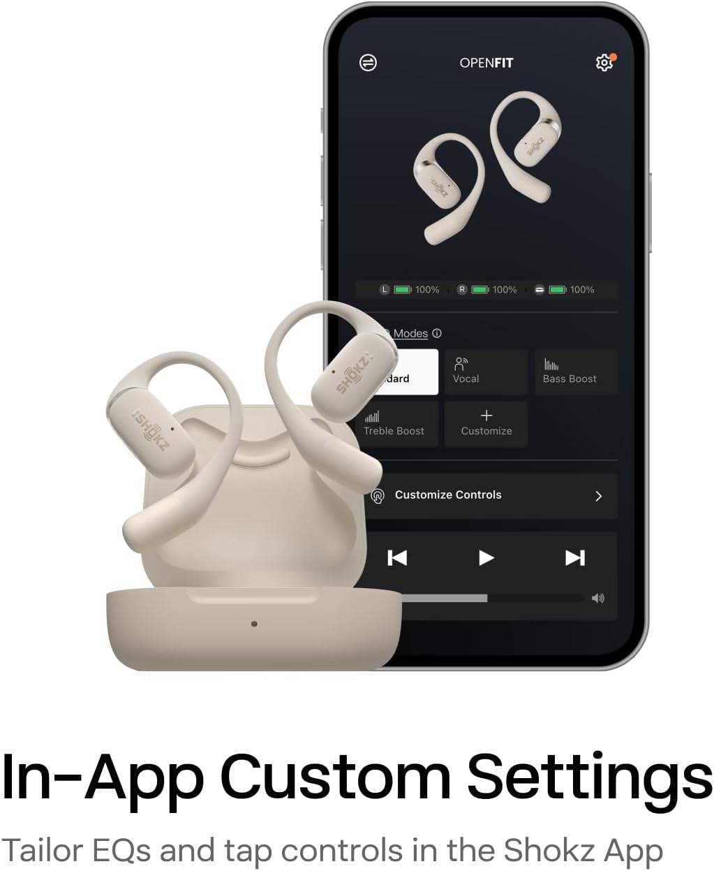 SHOKZ OpenFit Open-Ear True Wireless Bluetooth Headphones with Microphone, Earbuds with Earhooks, Sweat Resistant, Fast Charging, 28HRS Playtime (Beige)Dhs. 499.00Dhs. 599.00