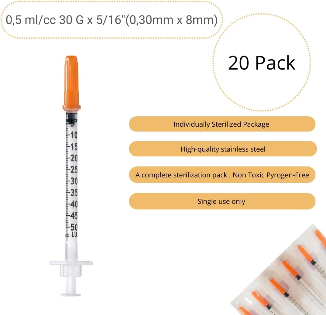 Pack of 20 0.5ml/cc Plastic Tube 30G (0.3 x 8 mm), Multi-Purpose Measuring Tools, Individually Packed (30G x 5/16")Dhs. 65.95