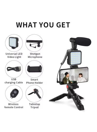 Vlogging Kit Smartphone Camera Video Vlogging Kit for iPhone/Android with Light + Microphone + Tripod + Phone Holder for Vlogging/YouTube/Tiktok/Facebook/CameraDhs. 82.28Dhs. 88.00