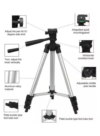 Tripod 3110 Smart Aluminium Adjustable Portable and Foldable Tripod Stand Clip and Camera Holder Silver/BlackDhs. 31.72Dhs. 37.00