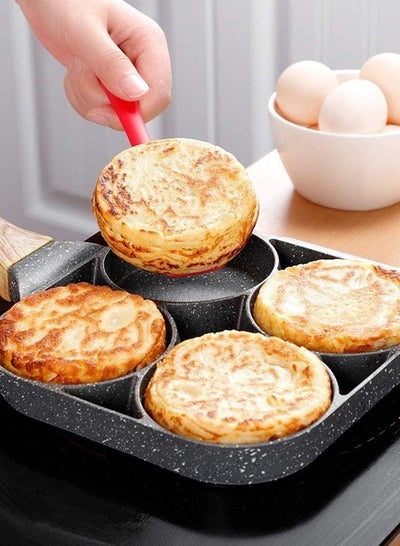 Non-Stick Aluminium 4 Hole Cooking Frying Pan with Wooden Handle and 4 Holes for making Breakfast Griddle Burgers Eggs omelette pancakeDhs. 28.59Dhs. 34.00