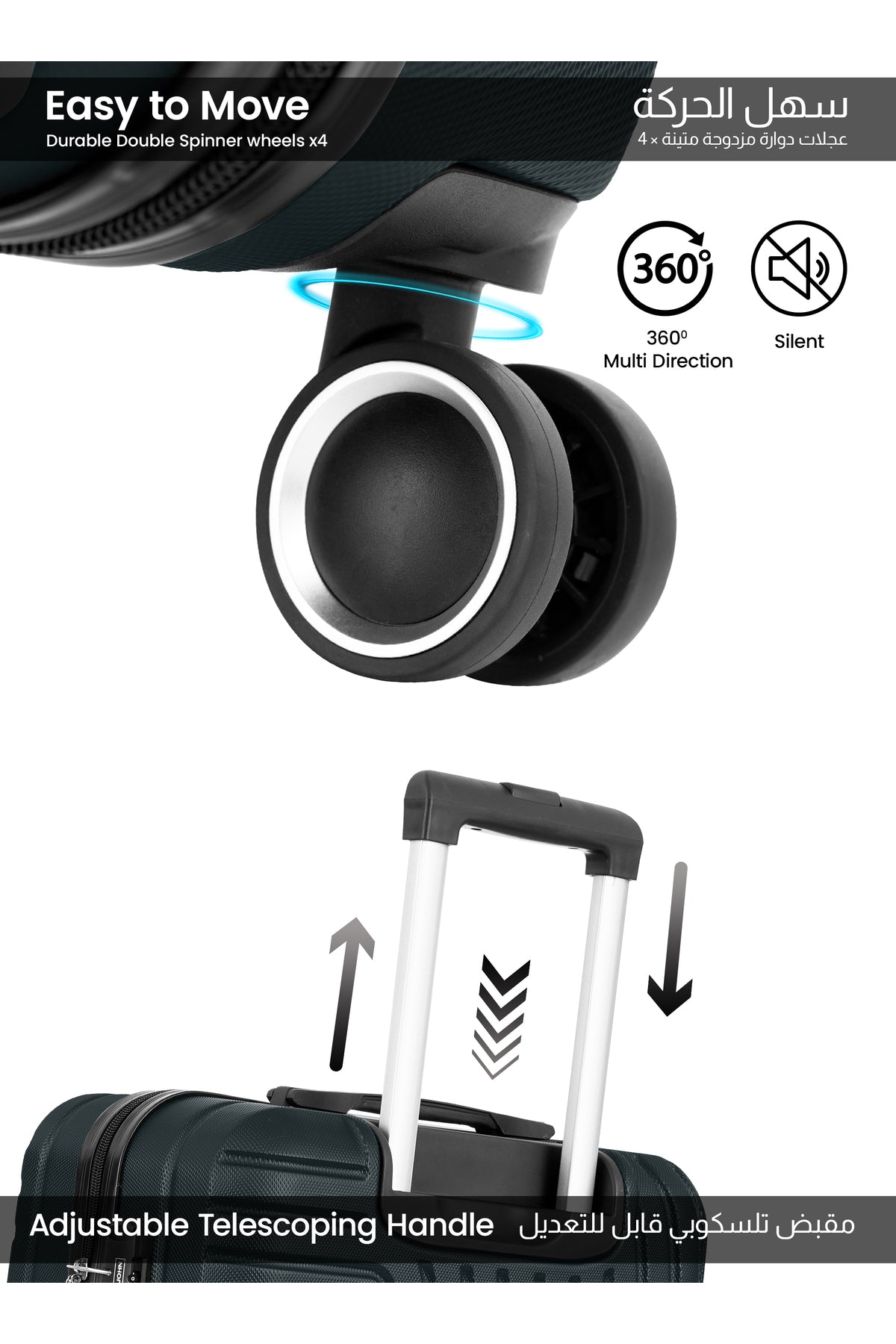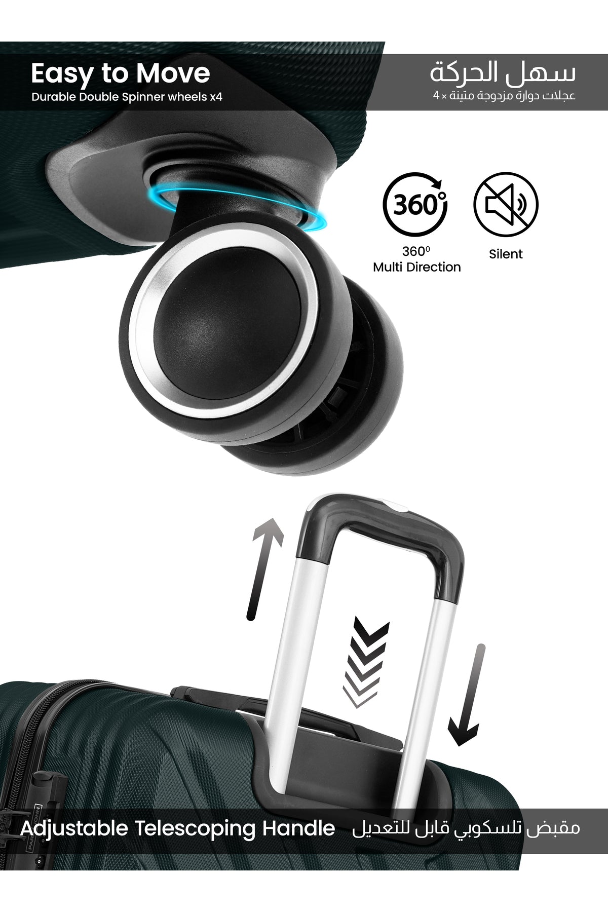 Lynx 3-Pc ABS Luggage Set – Small 10kg, Medium 20kg, Large 30kg, Lock & 4-Wheel Spinner, Army GreenDhs. 369.00