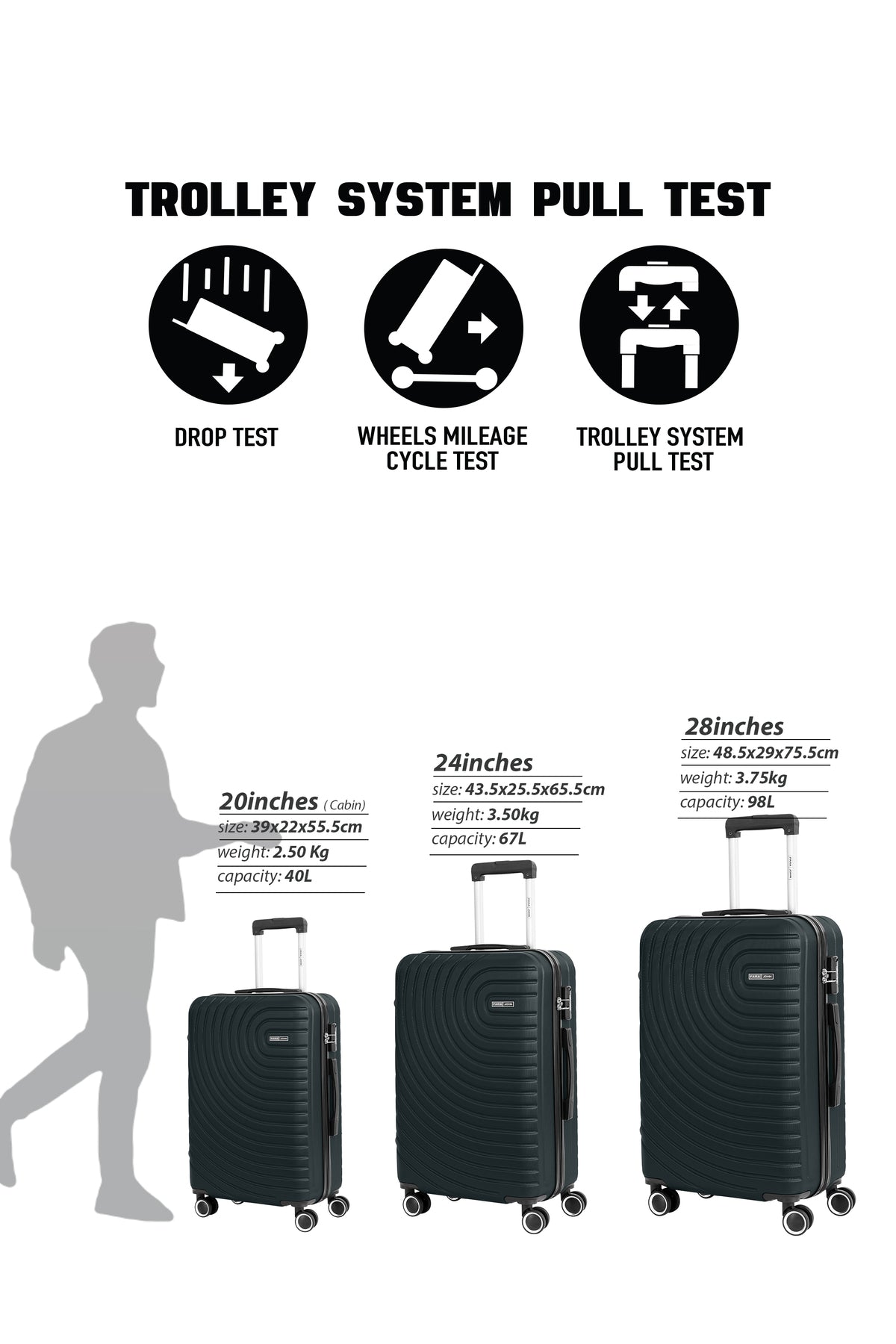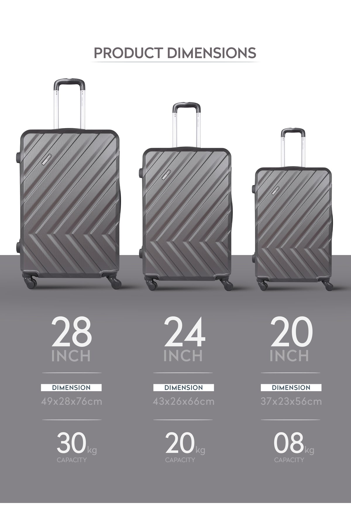 Lynx 3-Pc ABS Luggage Set – Small 10kg, Medium 20kg, Large 30kg, Lock & 4-Wheel Spinner, BlackDhs. 369.00