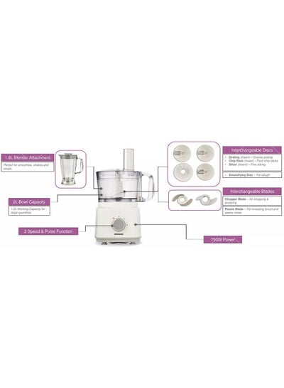 Food Processor Multi-Functional With 3 Interchangeable Disks, Blender, Whisk, Dough Maker 1.8 L 750.0 W FDP03.C0WH WhiteDhs. 183.22Dhs. 549.00