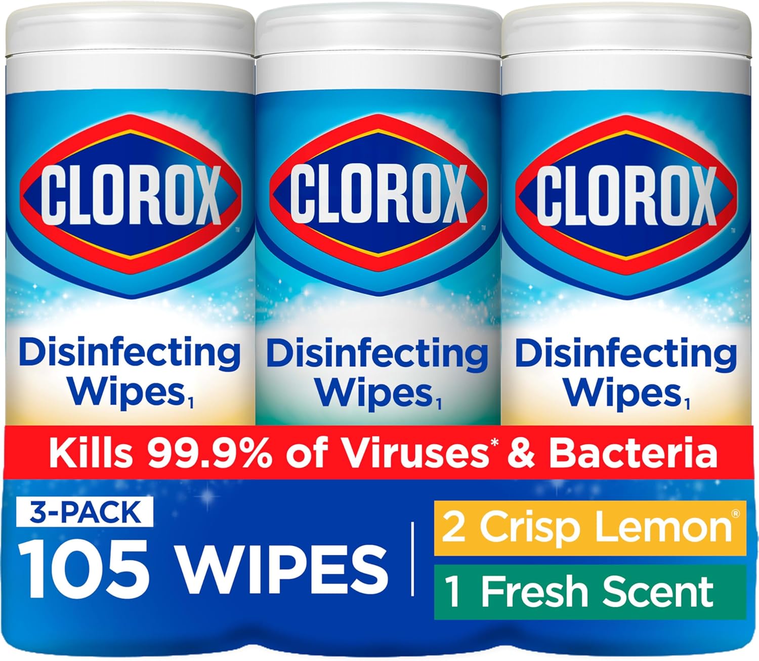 Clorox Disinfecting Wipes Crisp Fresh Scent Lemon Triple Pack x 35 Wet Wipes, Kills 99.9% of Viruses and BacteriaDhs. 300.00