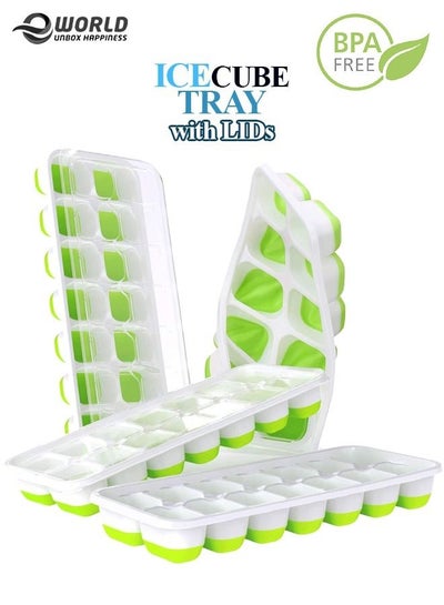 Pack of 4 Silicone Ice Cube Trays with Protective Removable Lid BPA Free Flexible Unbreakable Durable with Cover for FreezerDhs. 19.00Dhs. 19.90