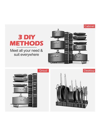 Pot Rack Organizer, 8 Tiers Adjustable Pots and Pans Organizer, Large Capacity Pot Lid Holders & Pan Rack for Kitchen Cabinet and Counter with 3 DIY Methods Black 40.8 x 26.4 x 10.8cmDhs. 42.00Dhs. 44.00