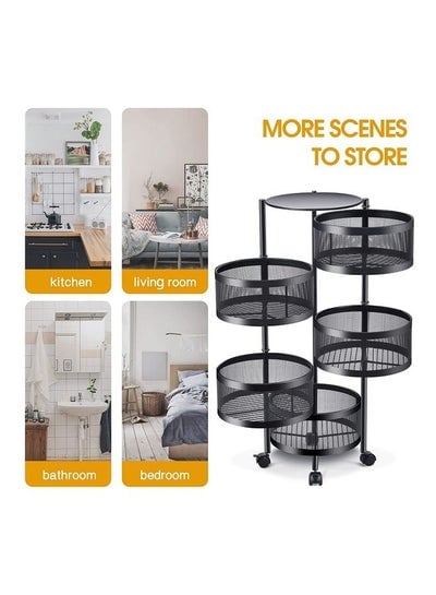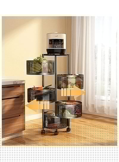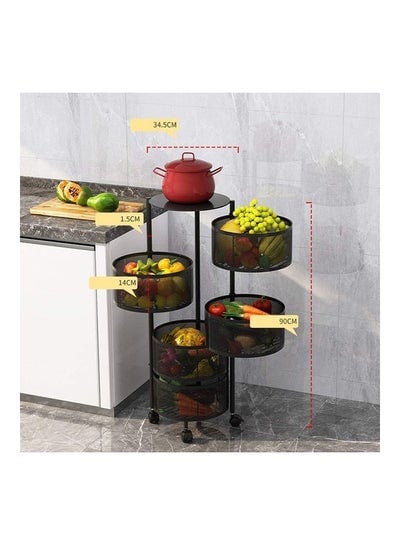 Multi-Layer Kitchen Storage Shelf Rotatable Steel Rack 4 Movable Wheels Fruit Vegetable Snack Organizer Stand Black 90cmDhs. 189.95Dhs. 199.00