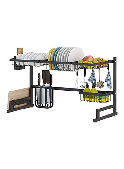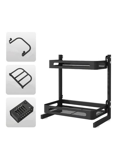 2-Tier Spice Rack Organizer Countertop Includes Cutlery Chopsticks Shelf Utensil Holder Freestanding For Jars Bottles Chopping Board With Removable Hooks Black 43*11*24.5cmDhs. 74.45Dhs. 78.00
