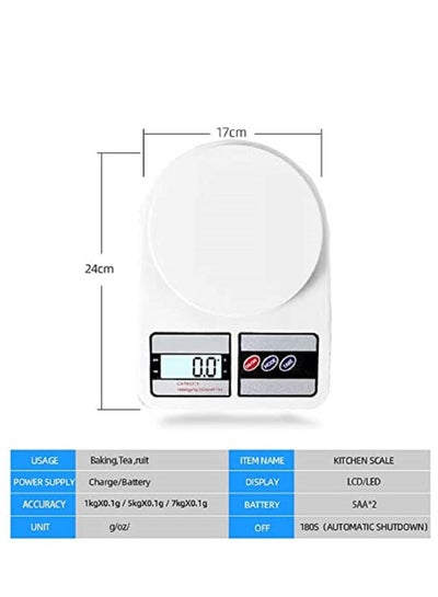 Electronic Kitchen Scale White Digital kitchen Scale with Auto-ON and Auto-OFF System Multifunction Scale With Digital Display, Capacity 7 to 10 kgDhs. 17.37Dhs. 18.00