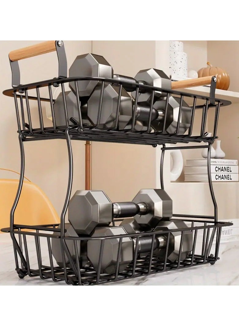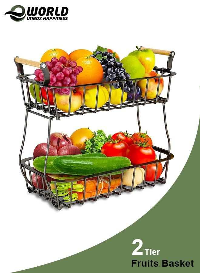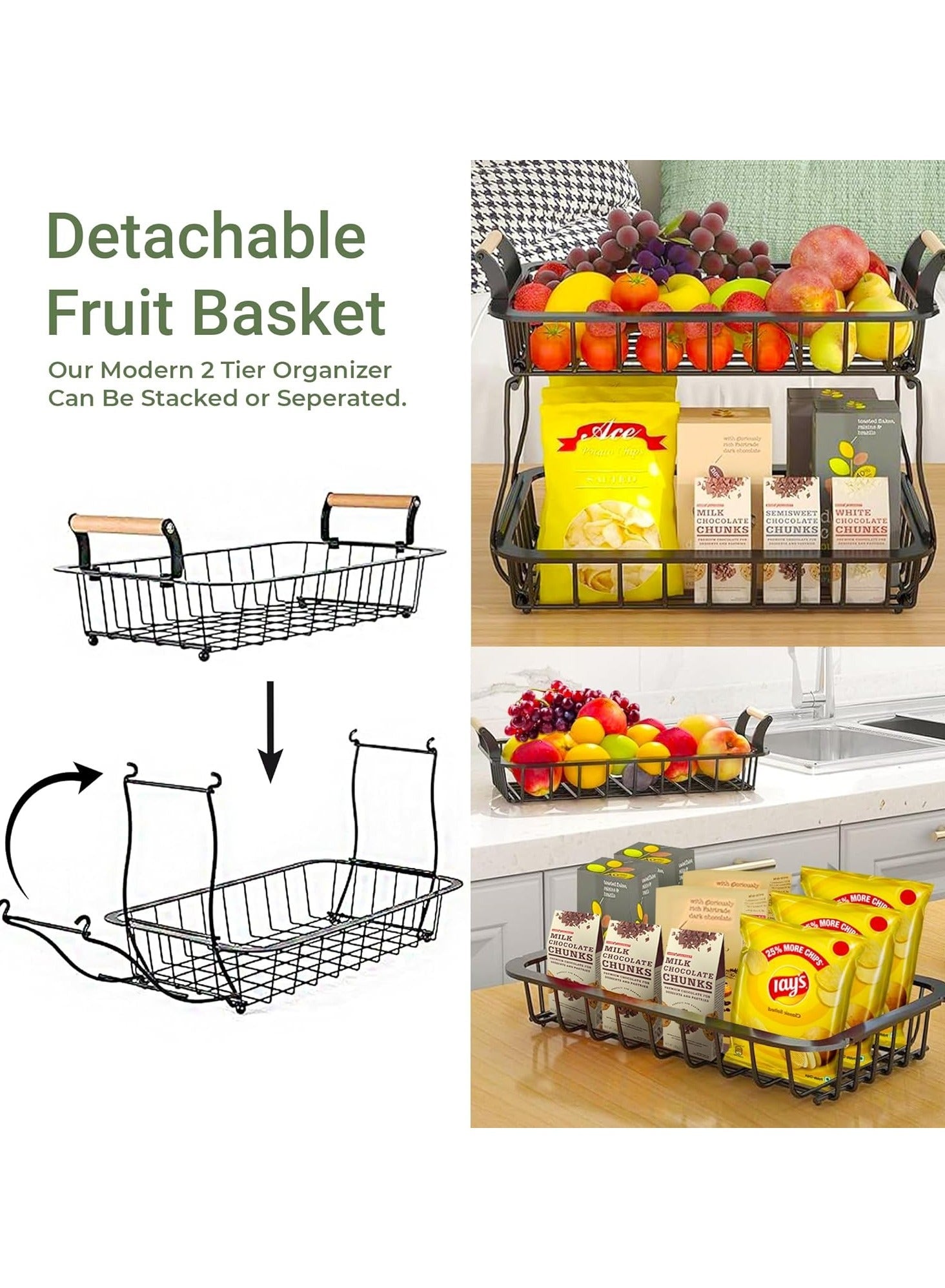 Eworld 2-Tier Fruit Basket for Kitchen Countertop, Detachable Metal Storage Stand with Wooden Handle, Ideal for Fruits, Vegetables, Bread and Snacks, BlackDhs. 59.95Dhs. 75.00