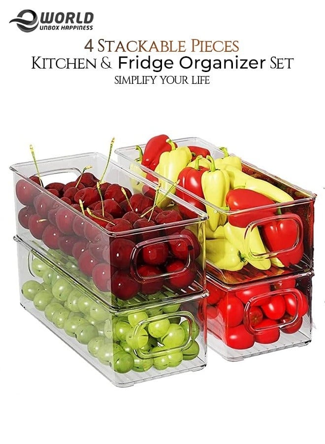Eworld Pack of 2 Clear Plastic Refrigerator Storage Organizer Bins Food Container Box with Handles for Fridge Freezer Pantry Kitchen CabinetDhs. 49.95