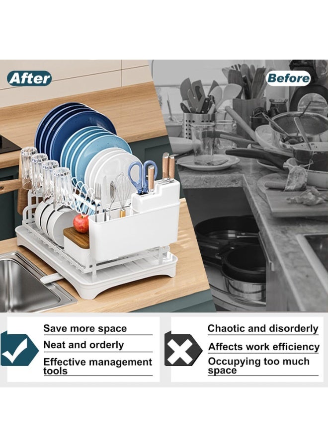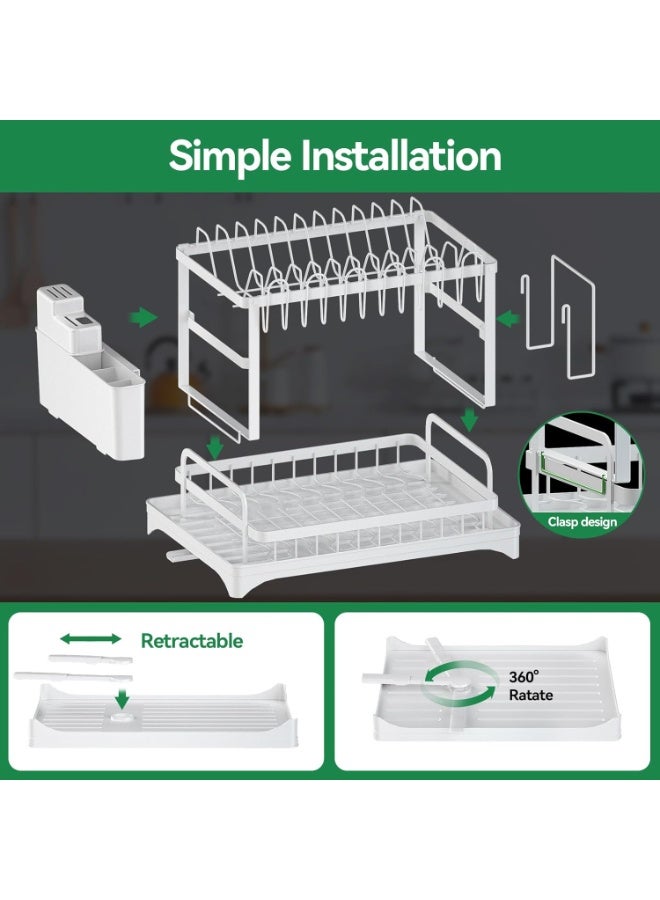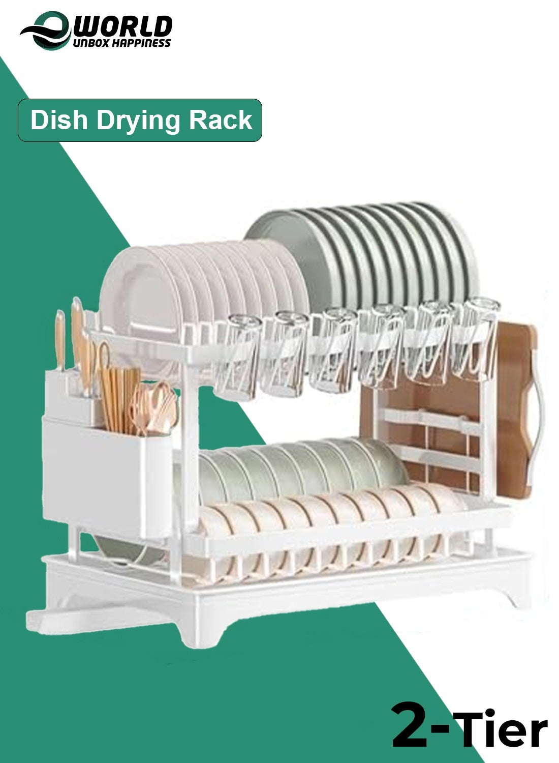Eworld 2-Tier Stainless Steel Dish Drying Rack with Drainboard & Utensil Holder – Large Capacity Kitchen Organizer for Plates, Bowls, Cups & Bottles – WhiteDhs. 59.90Dhs. 69.95