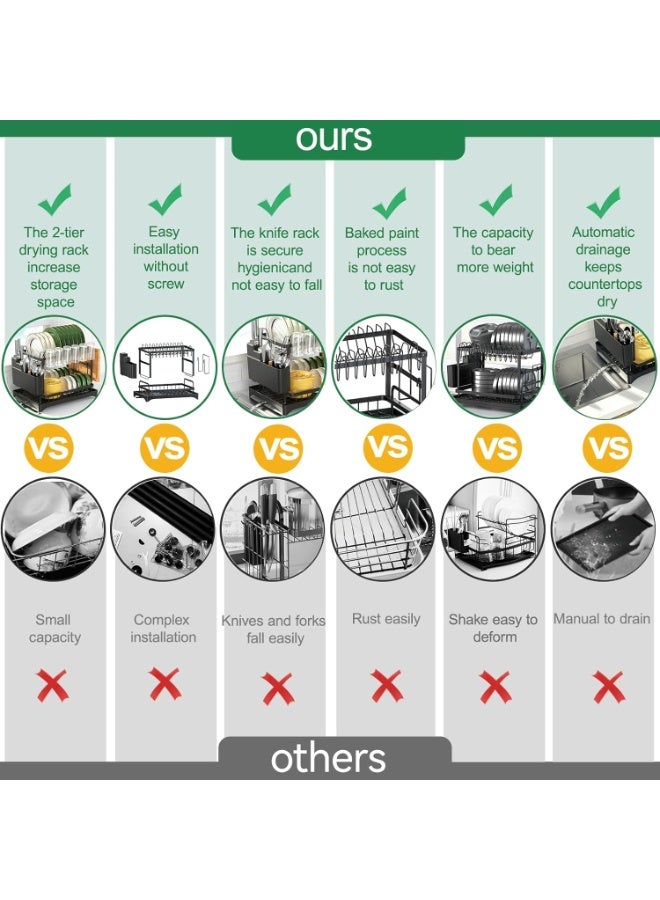2-Tier Stainless Steel Dish Drying Rack with Utensil, Cup & Cutting Board Holder – Black & WhiteDhs. 59.95Dhs. 95.00