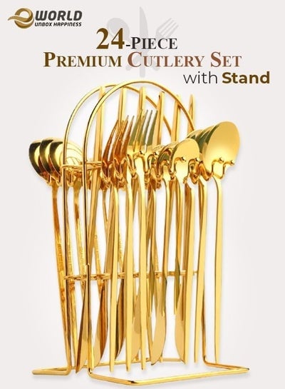 24-Piece Gold Cutlery Stainless Steel set with Stand, Spoon, Knife and Fork Service for 6, Safe and Easy to CleanDhs. 189.95Dhs. 199.00