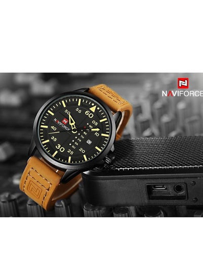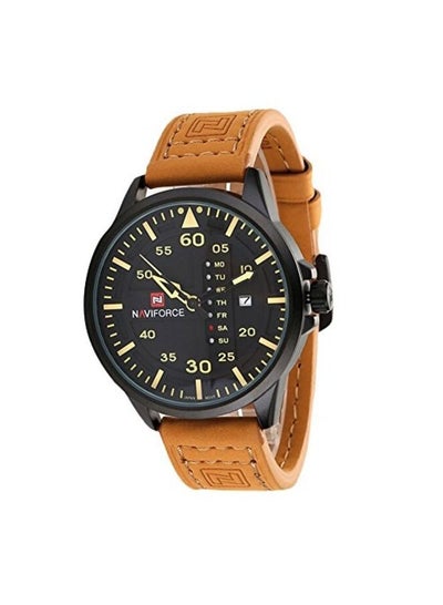 Neviforce NF9074 Men's Black Dial Leather Band Watch - Brown