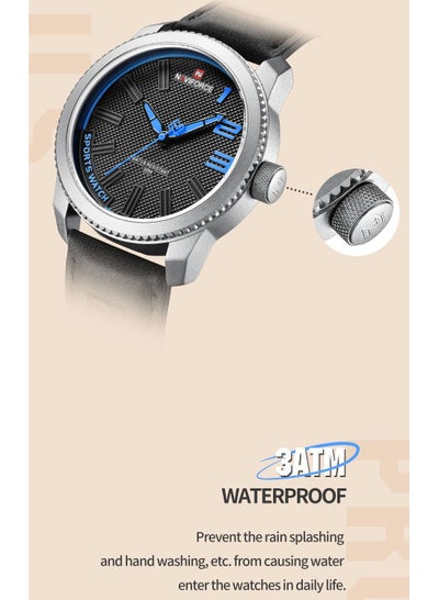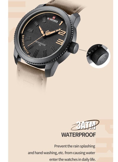 NAVIFORCE Men's New Watch Men's Wrist Luxury Quartz Sports PU Leather Strap 30m Waterproof Watch NF9202L