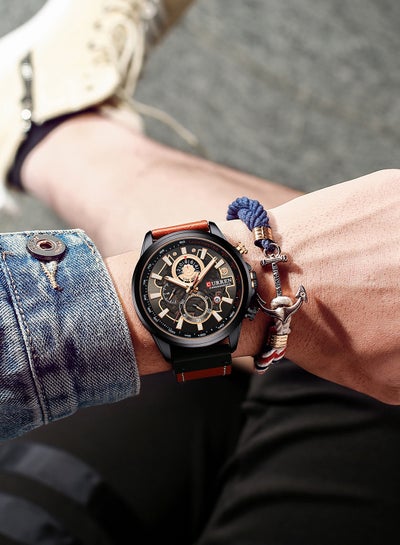 Men's Waterproof Geniune Leather BAnd Chronograph Quartz Watch 8380 - 48 mm - OrangeDhs. 51.09Dhs. 215.00