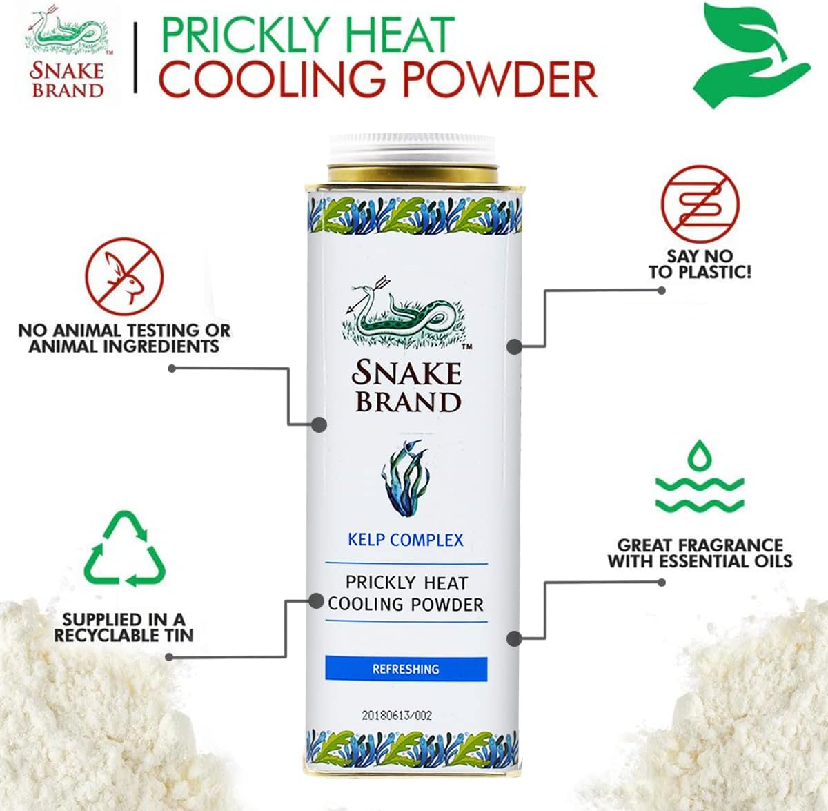 Snake Brand Prickly Heat Cooling Talcum Powder | For Heat & Rash Treatment (280g, Refreshing)Dhs. 69.95