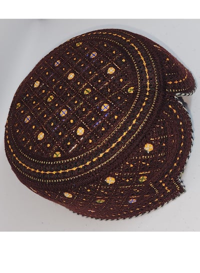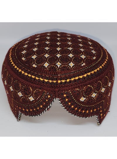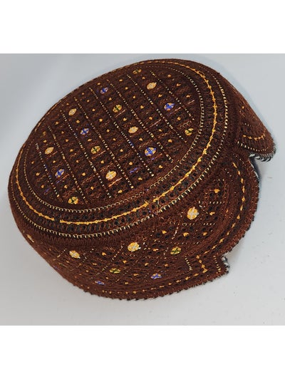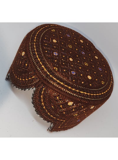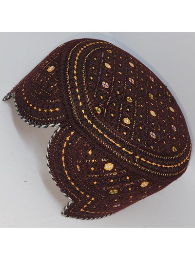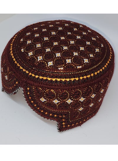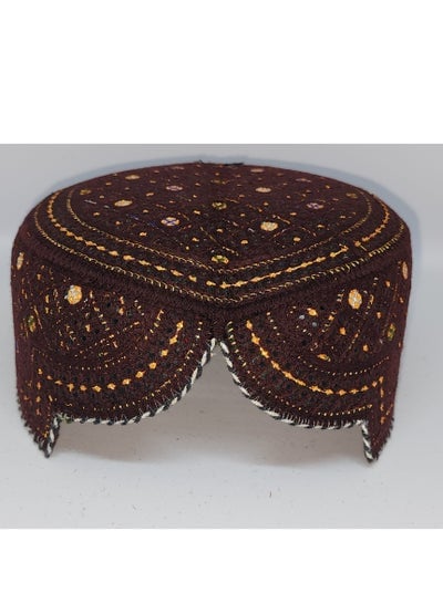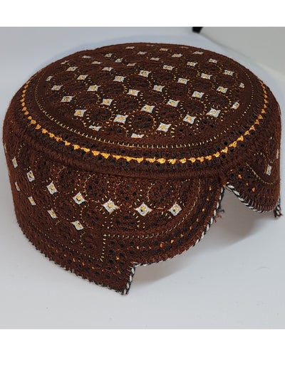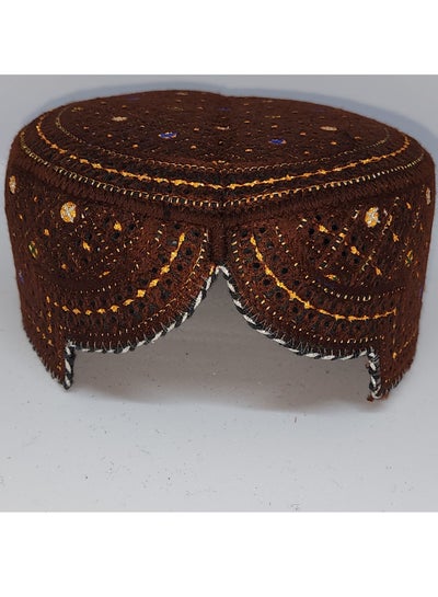 Traditional Sindhi Cap Topi is known as The Sindhi Kufi Handmade Woven Embroidery Use By Sindhis in Pakistan Essential Part Of Saraiki And Balochi Culture In Broun with GoldDhs. 79.33Dhs. 89.95