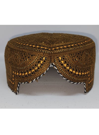 Traditional Sindhi Cap Topi is known as The Sindhi Kufi Handmade Woven Embroidery Use By Sindhis in Pakistan Essential Part Of Saraiki And Balochi Culture in Mehndi with GoldDhs. 70.55Dhs. 80.00