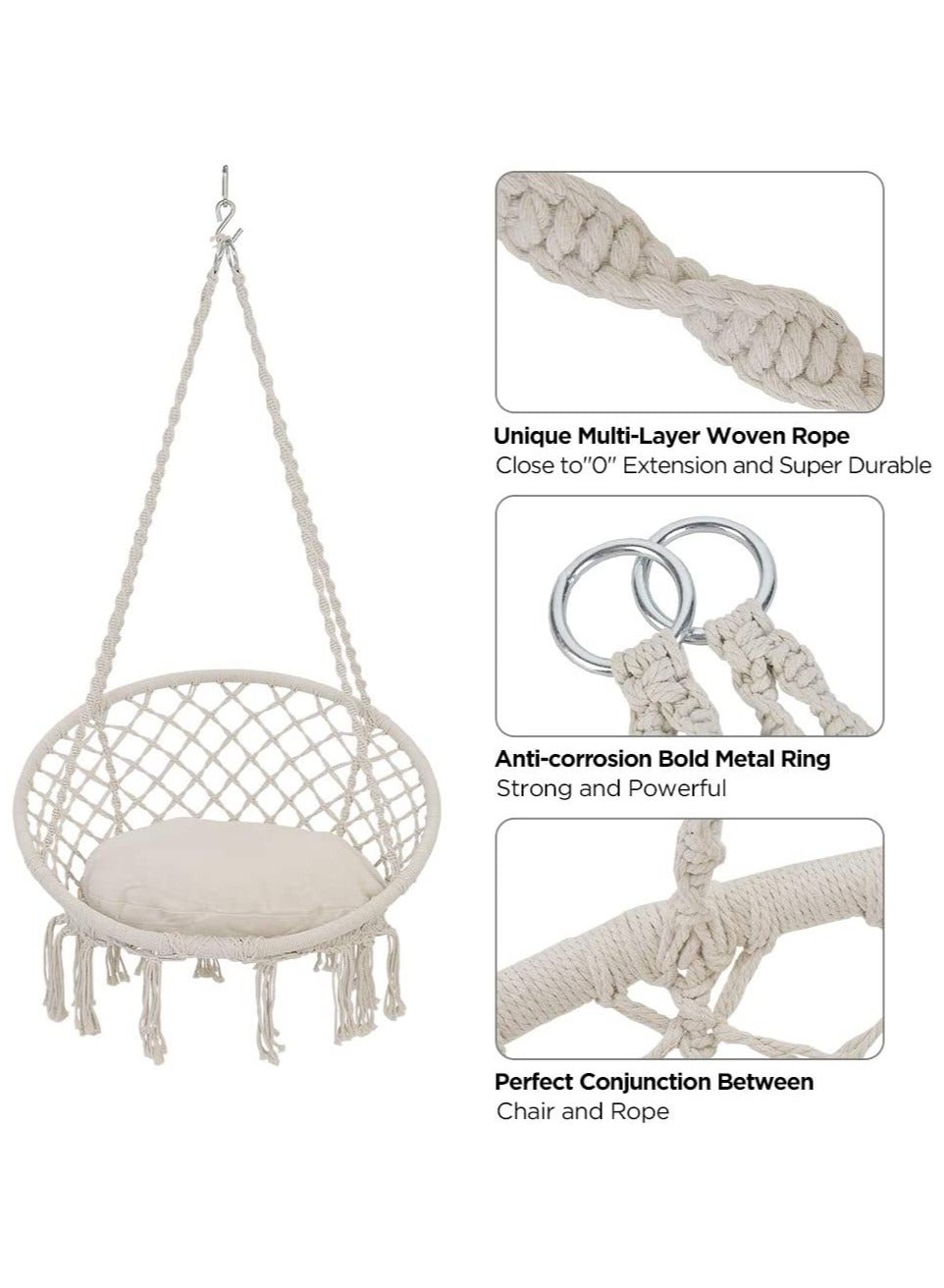 Eworld Hanging Hammock Swing Chair for Indoor and Outdoor Patio with Adjustable HeightDhs. 125.00Dhs. 175.00