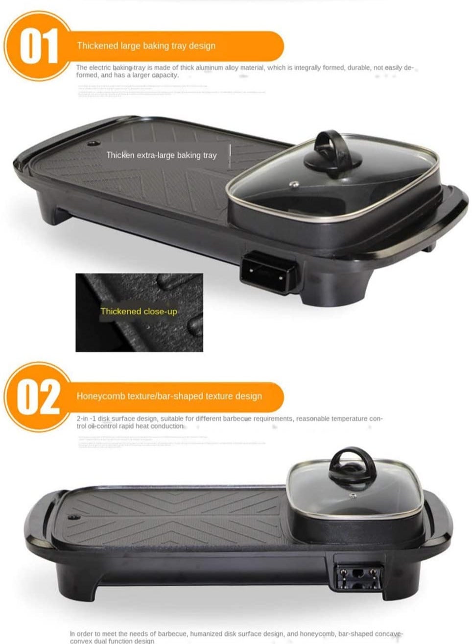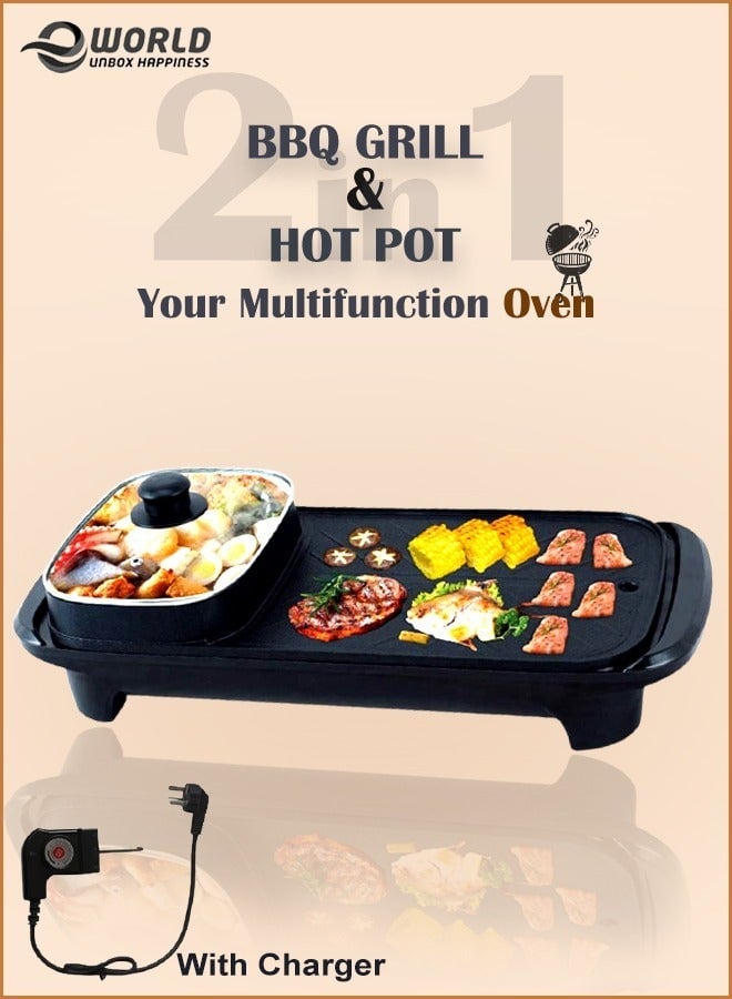 Eworld 2-In-1 Portable Electric BBQ Grill Smokeless Non-Stick Roasting Barbecue Pan and Multifuntion Hot Pot For FamilyDhs. 74.95