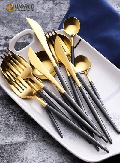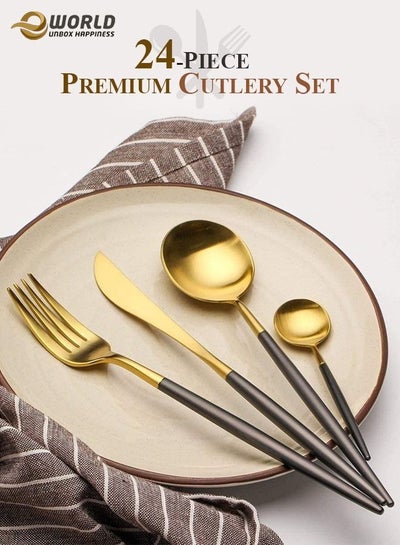 24 Piece Premium Stainless Steel Cutlery & Flatware Dinner Set Tableware Dining Table Kitchen Knife Spoons and Fork Set For Home, Hotels and Restaurants Black/GoldDhs. 81.09Dhs. 84.95