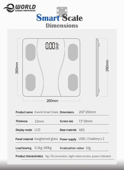 Electric Smart Measuring Bathroom Scale Intelligent BMI Body Fat Weight Protein Health Analyzing Device with High Precision and LED Screen Monitor BluetoothDhs. 53.41Dhs. 99.00