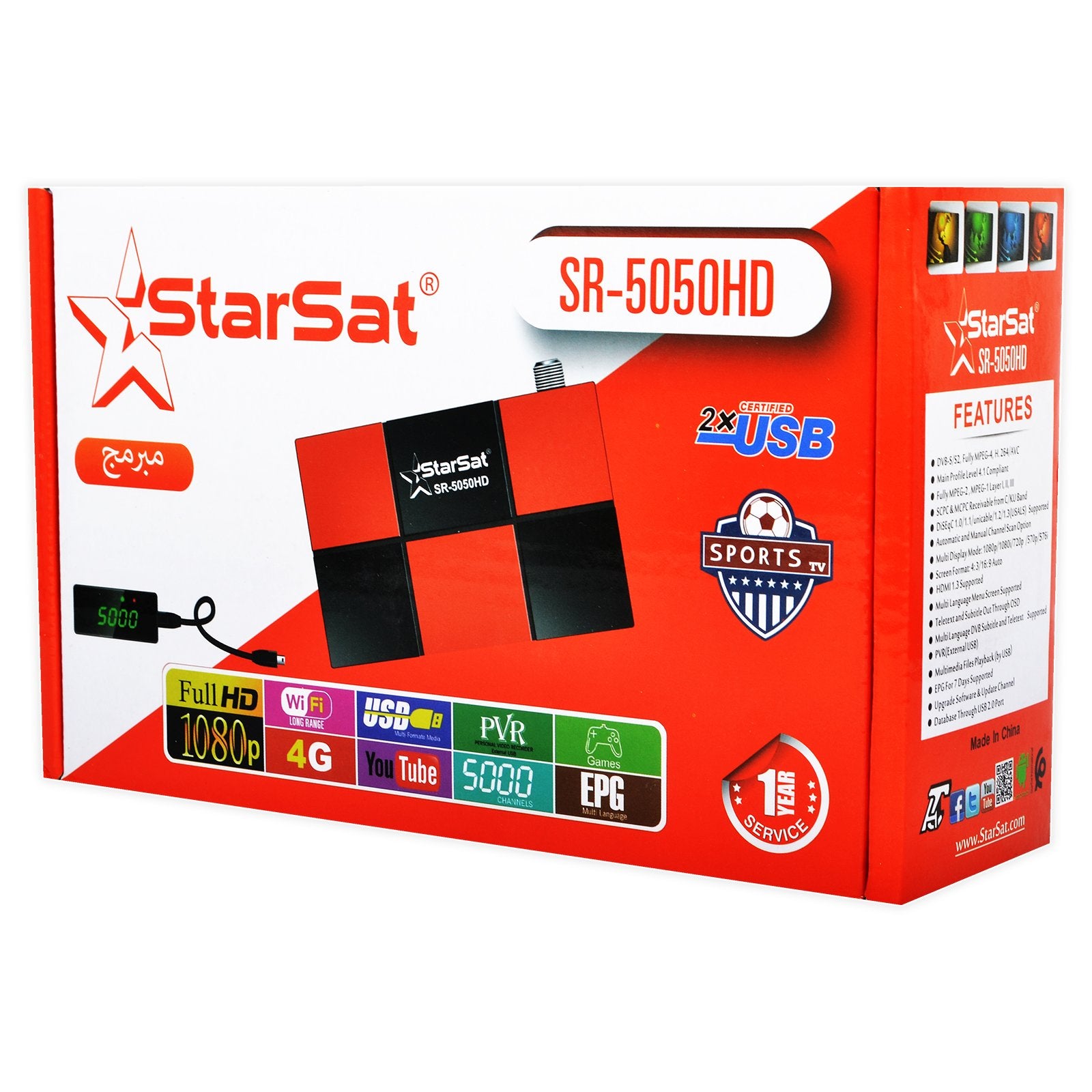 StarSat SR-5050HD Full HD Receiver with 1 year service, 2xUSB, HDMI, EPG, MPEG4, Blind Scan, YouTube, PVR, DVBS2, 4G & WiFi Supported (WiFi device not include)Dhs. 48.00Dhs. 65.00