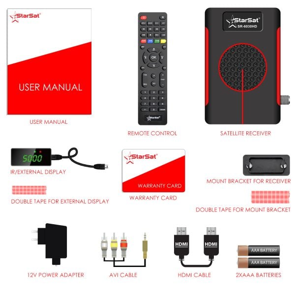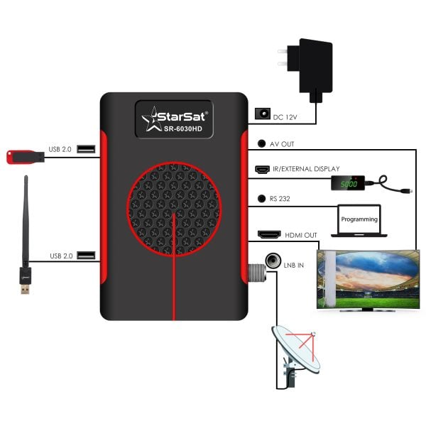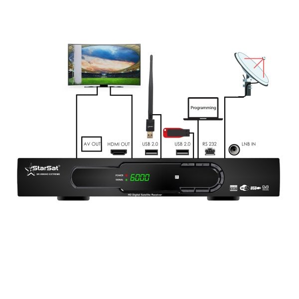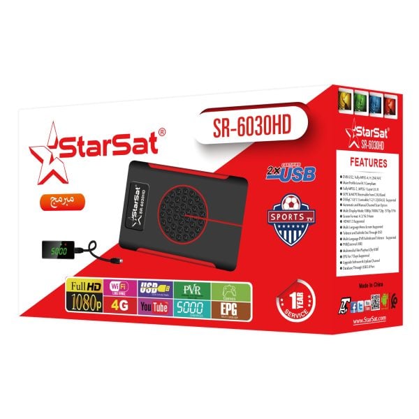 StarSat SR-6030HD Full HD1080, 2xUSB, HDMI, 6000 Channels, EPG, MPEG4, Blind Scan, PVR, DVBS2, WiFi Supported (WiFi device not include)Dhs. 48.00Dhs. 85.00