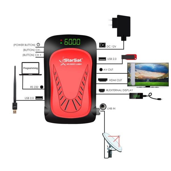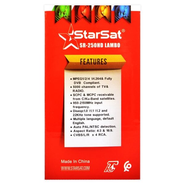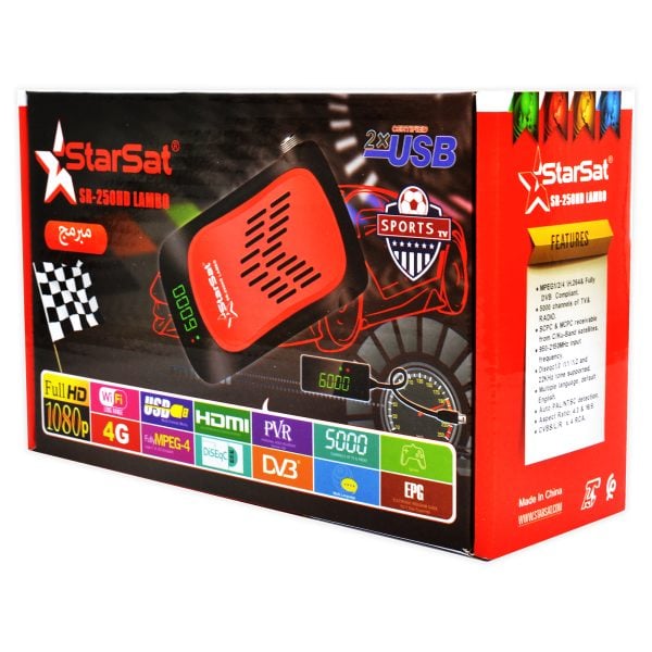 StarSat SR-250HD Lambo Full HD Receiver, 2xUSB, HDMI, 5000 Channels, EPG, MPEG4, Blind Scan, YouTube, PVR, DVBS2, 4G & WiFi Supported (WiFi device not include)Dhs. 49.00Dhs. 79.00