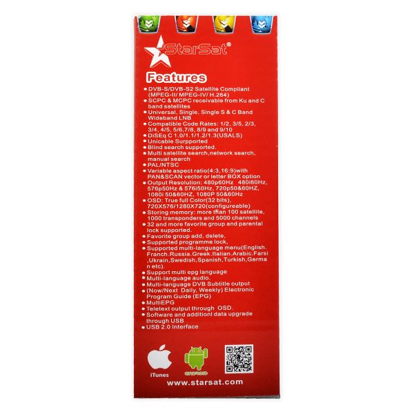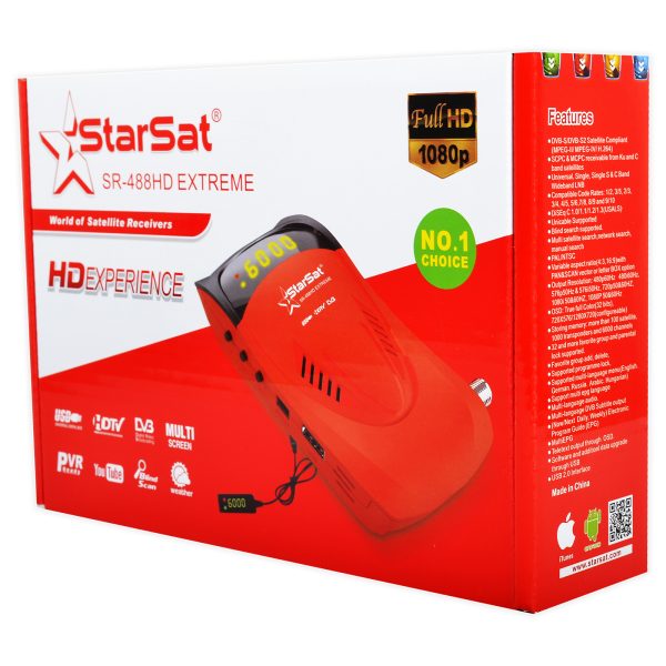 StarSat SR-488HD Full HD, 2xUSB, HDMI, 6000 Channels, EPG, MPEG4, Blind Scan, YouTube, PVR, DVBS2, WiFi Supported (WiFi device not include)Dhs. 52.00Dhs. 88.00