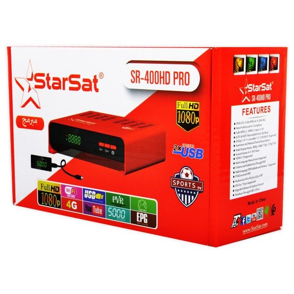 StarSat SR-400HD Pro Full HD Receiver, 2xUSB, HDMI, 5000 Channels, EPG, MPEG4, Blind Scan, YouTube, PVR, DVBS2, Games, 4G & WiFi Supported (WiFi device not include)Dhs. 54.00Dhs. 78.00