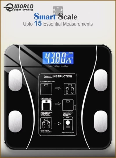 Electric Smart Measuring Bathroom Scale Intelligent BMI Body Fat Weight Protein Health Analyzing Device with High Precision and LED Screen Monitor BluetoothDhs. 53.41Dhs. 99.00